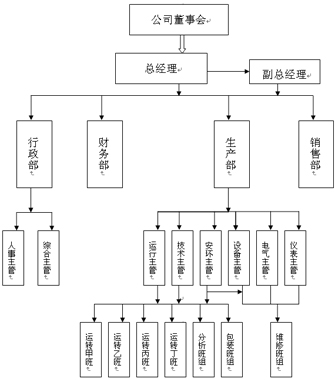 生產(chǎn)部、財(cái)務(wù)部、行政部、銷(xiāo)售部各設(shè)部長(zhǎng)1名,由總經(jīng)理聘任。