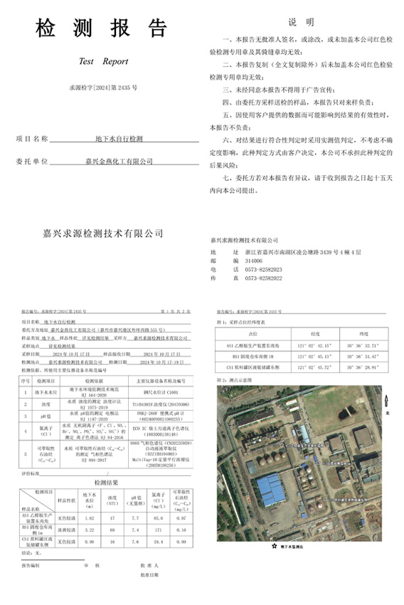 嘉興市綠新環境科技有限公司 嘉興金燕化工有限公司地下水自行監測